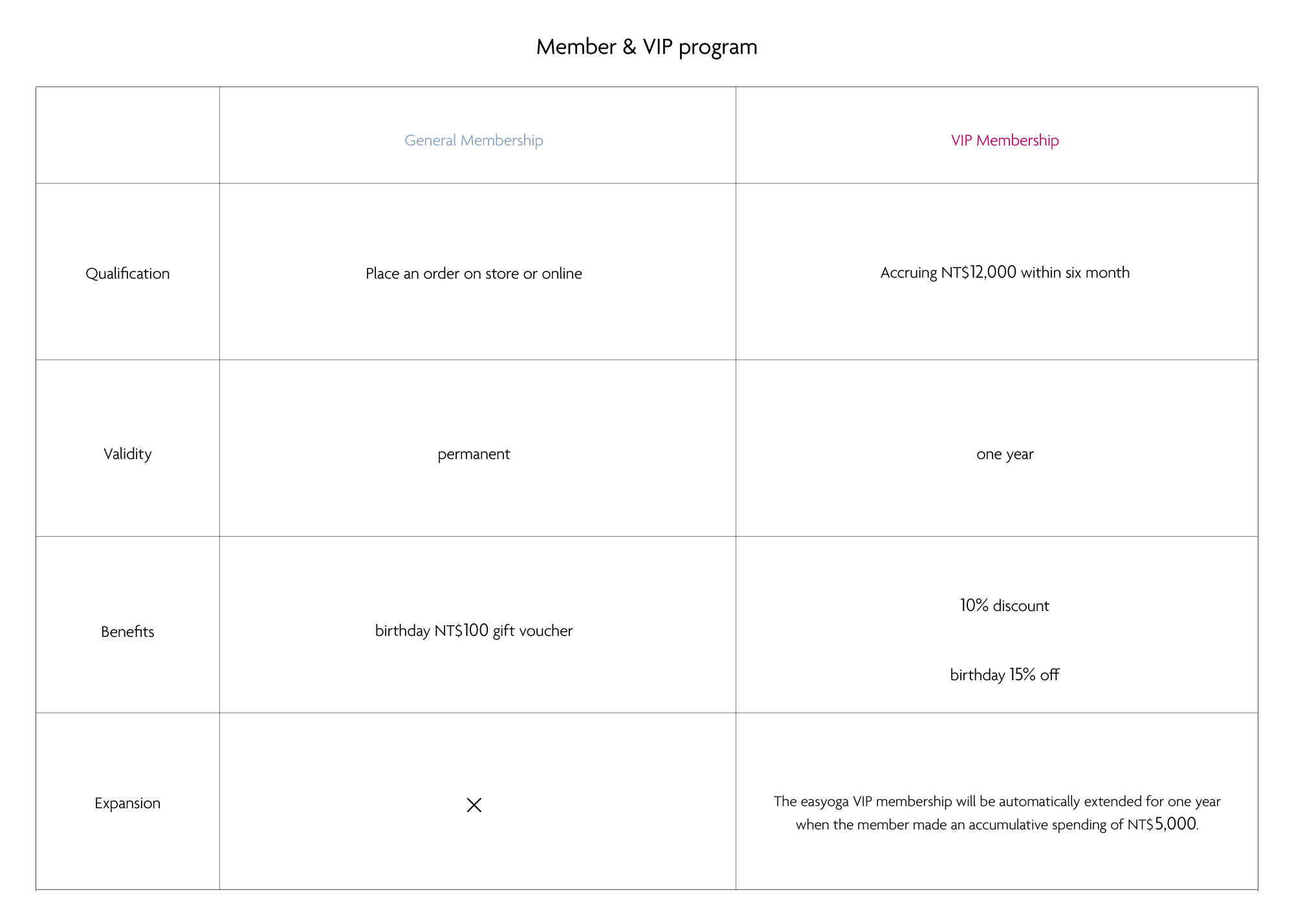 ■ Making purchases both online and at our easyoga Taiwan flagship stores(Xinyi or Taichung) can accumulate together to become a VIP member for more benefits.